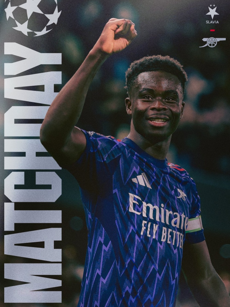 剑指三分!阿森纳发布本轮欧冠海报:萨卡单人出镜